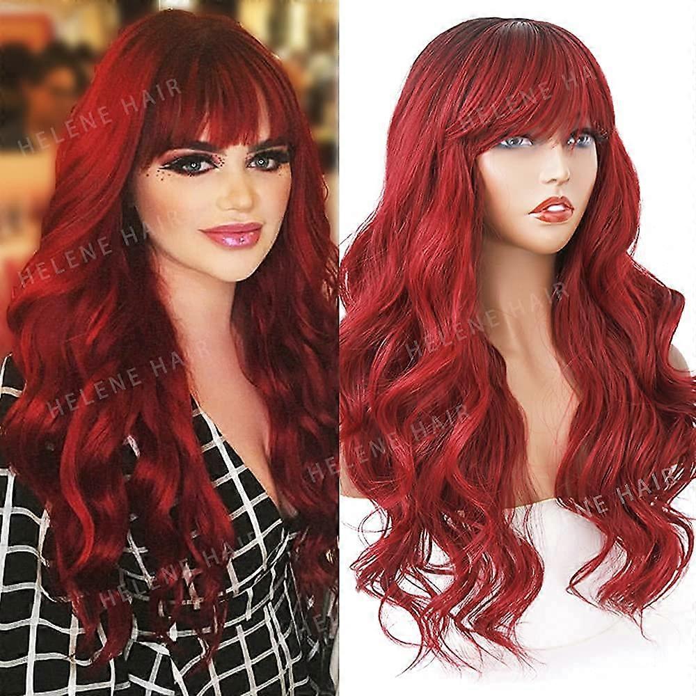 Red Wig Ombre Red Long Wavy Heat Synthetic Resistant Wig 24 Inches