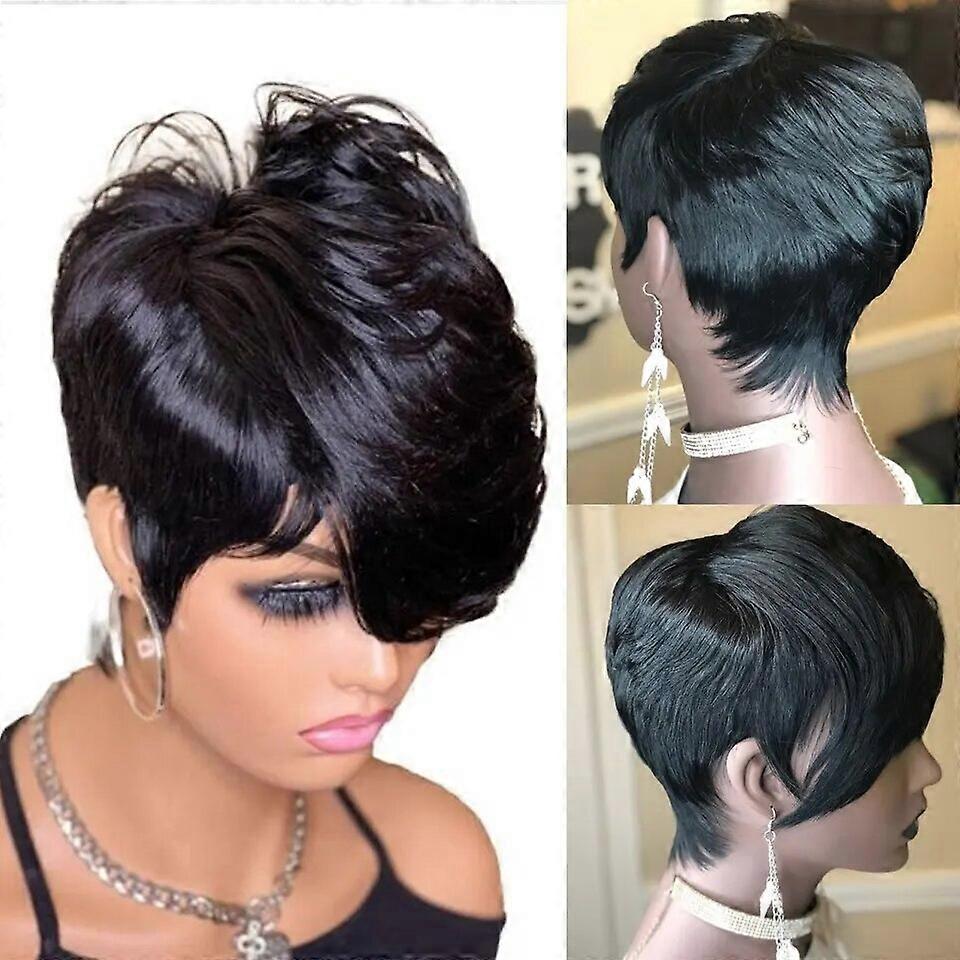 Short Pixie Cut Wigs Full Machine Made Wig With Bangs Dovetail Straight Glueless Remy Human Hair Mullet Wigs For Women