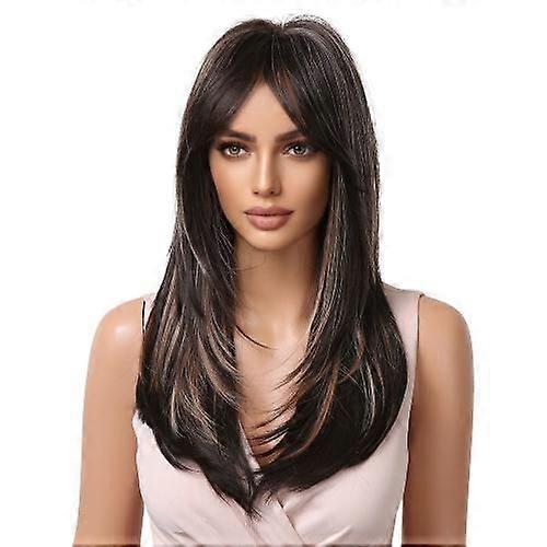 Long Layered Synthetic Straight Wigs With Bangs Wine Red Heat Resistant Fibre