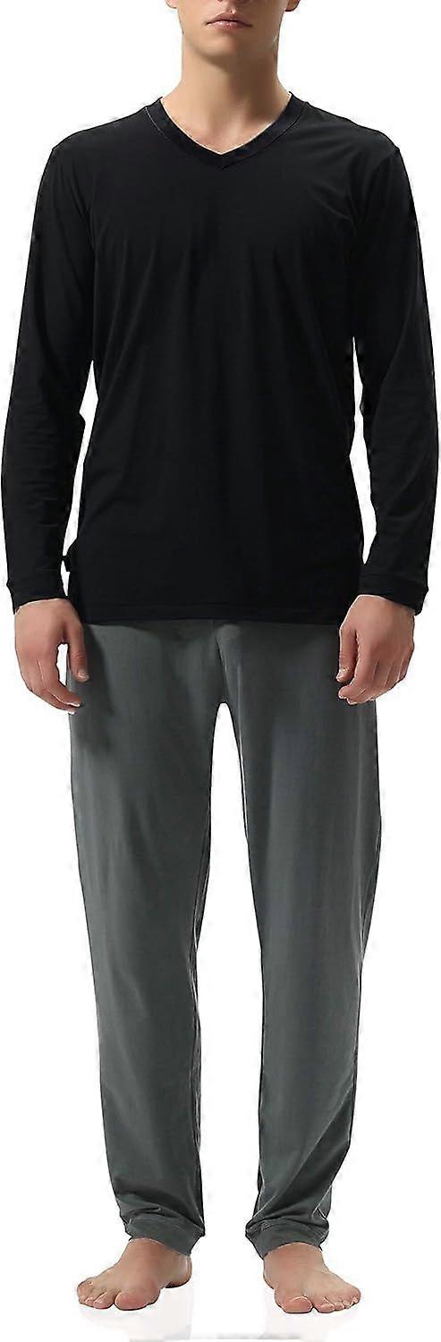 Men's Cotton PJs Heather Striped Sleepwear Lounge Wear Top & Bottom Pajama Set