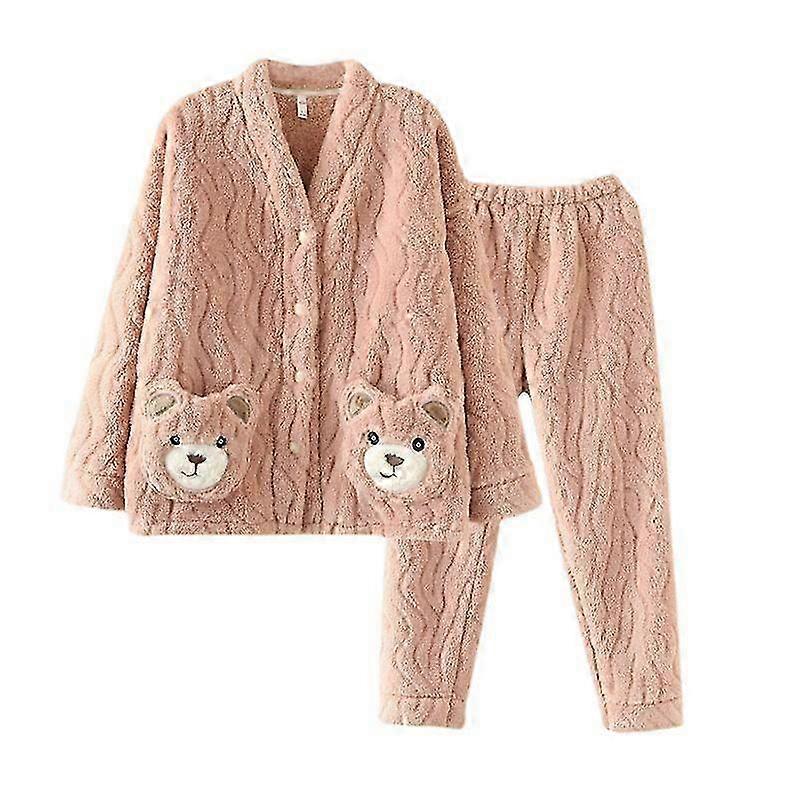 2025 Winter pajamas for women with velvet and thickened warm coral velvet outer wear flannel cute bear home clothes set