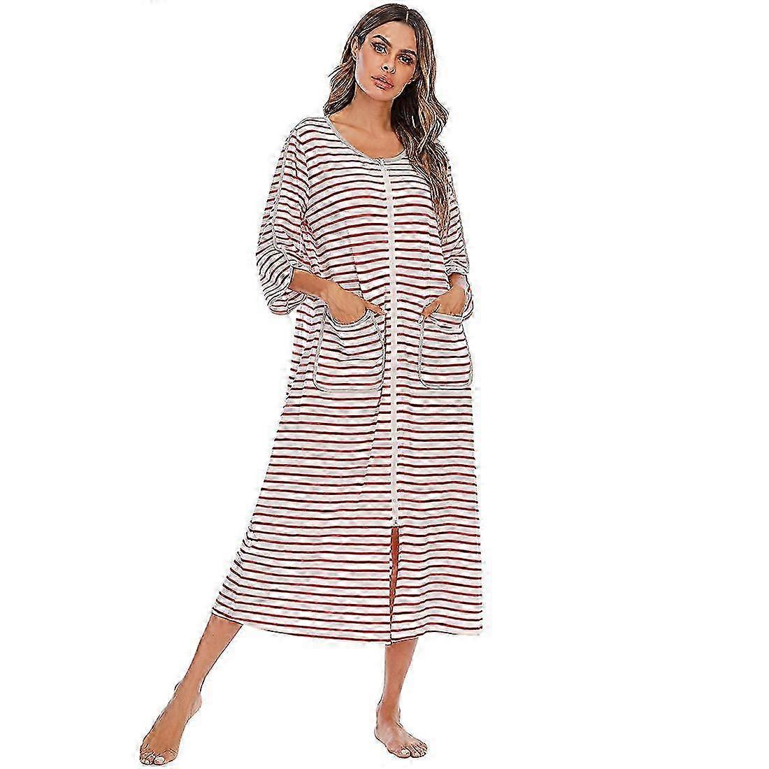 Bright Deer Women's Maternity Robe Pajamas Labor and Delivery Gown Hospital Striped Zip Up Long Birthing Nursing Breastfeeding Postpartum Nightgowns 2