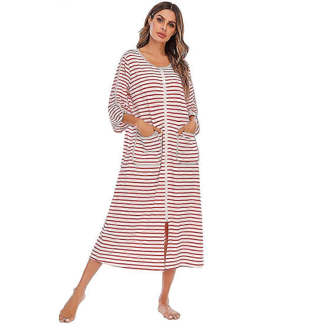Bright Deer Women's Maternity Robe Pajamas Labor and Delivery Gown Hospital Striped Zip Up Long Birthing Nursing Breastfeeding Postpartum Nightgowns