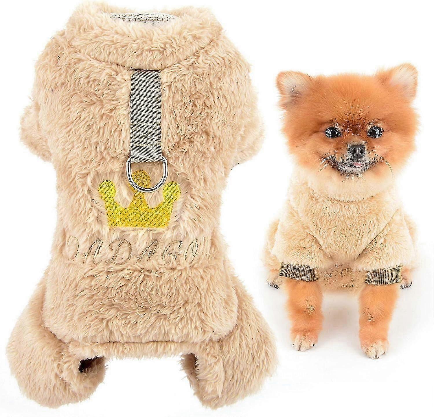 Dog Pajamas for Small Dog, Pet Pullover Pyjamas with Embroidery Crown and D-ring, Soft Winter Fall Jumpsuit