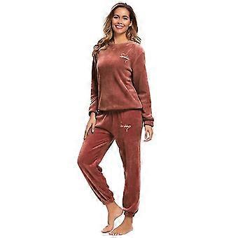 Winter Warm Pajamas Plus Fleece Top Trousers Round Neck Soft Pajamas Set