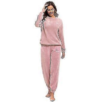 Pijamas quentes de inverno mais calças de lã top pescoço redondo pescoço macio conjunto de pijamas macios