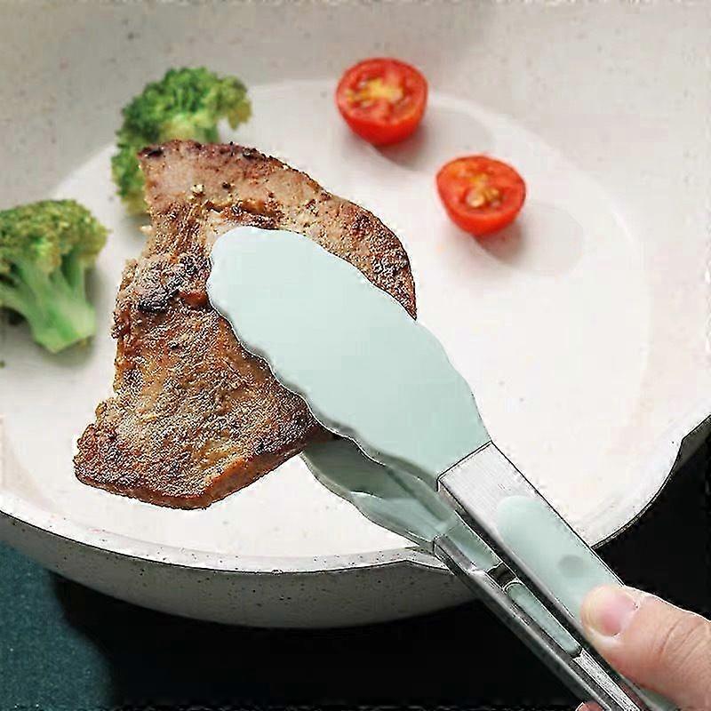 Silicone Kitchen Tongs (9 inch), High Heat Resistant to 480F, Stainless Steel with Non-Stick Silicone Tips (9 inch, Green)-48swer