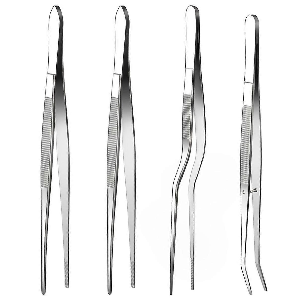 Expertly designed with unparalleled quality, our 4-piece stainless steel tweezer tongs set is an essential tool for any cooking and baking enthusiast. Crafted from high-grade, food-safe steel, these tools are durable, sturdy, and won't harm your body with the heavy-duty design ensuring durability and long-term use. Our cooking tweezer set includes different sized and angled tweezer tongs, featuring a long 6.3 inch handle for additional safety. Save your hands from hot oil or burns while adding more precision and control. A perfect mix of functionality and style to augment your kitchen utensil collection. Feel the difference that precision makes with these professional-grade food tweezers. A great tool for handling delicate foods and other small items, these tweezers are perfect for tasks ranging from picking herbs to plating dishes. Elevate your culinary game and make every meal a masterpiece. Experience superior grip without any slips, thanks to the precision serrated tips on our tongs. These finely crafted tips allow you to grab even the most intricate, slippery items, making your cooking experience more productive and less stressful. A must-have tool for any kitchen. Our stainless steel cooking tweezer tongs do more than just cooking and baking. They are perfect for various applications like medical-uses, beauty, handling seafood, electronic items, handicrafts, and laboratory work. They can even double as feeding tools for small animals or for maintaining your plants, making them the ultimate multi-purpose kitchen tool. Colour:Silver Material:Stainless steel Package Contents: 4 * tweezers Only the above package content, other products are not included. Note: Light reflection and different displays may cause the color of the item in the picture a little different from the real thing. The measurement allowed error is +/- 1-3cm.
