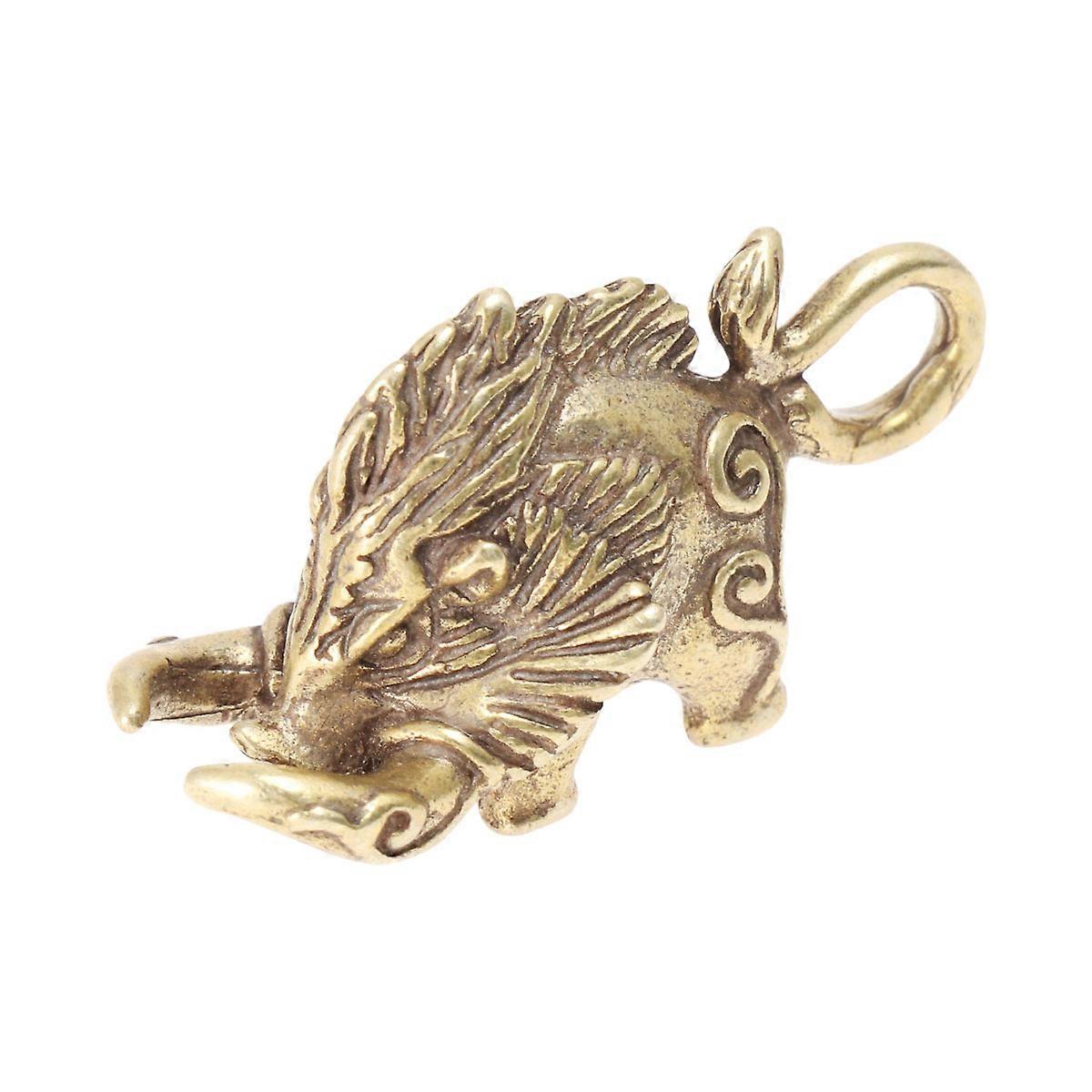 Golden Brass Wild Boar Shaped Key Chain Pendant for Car Key 2.8 inches