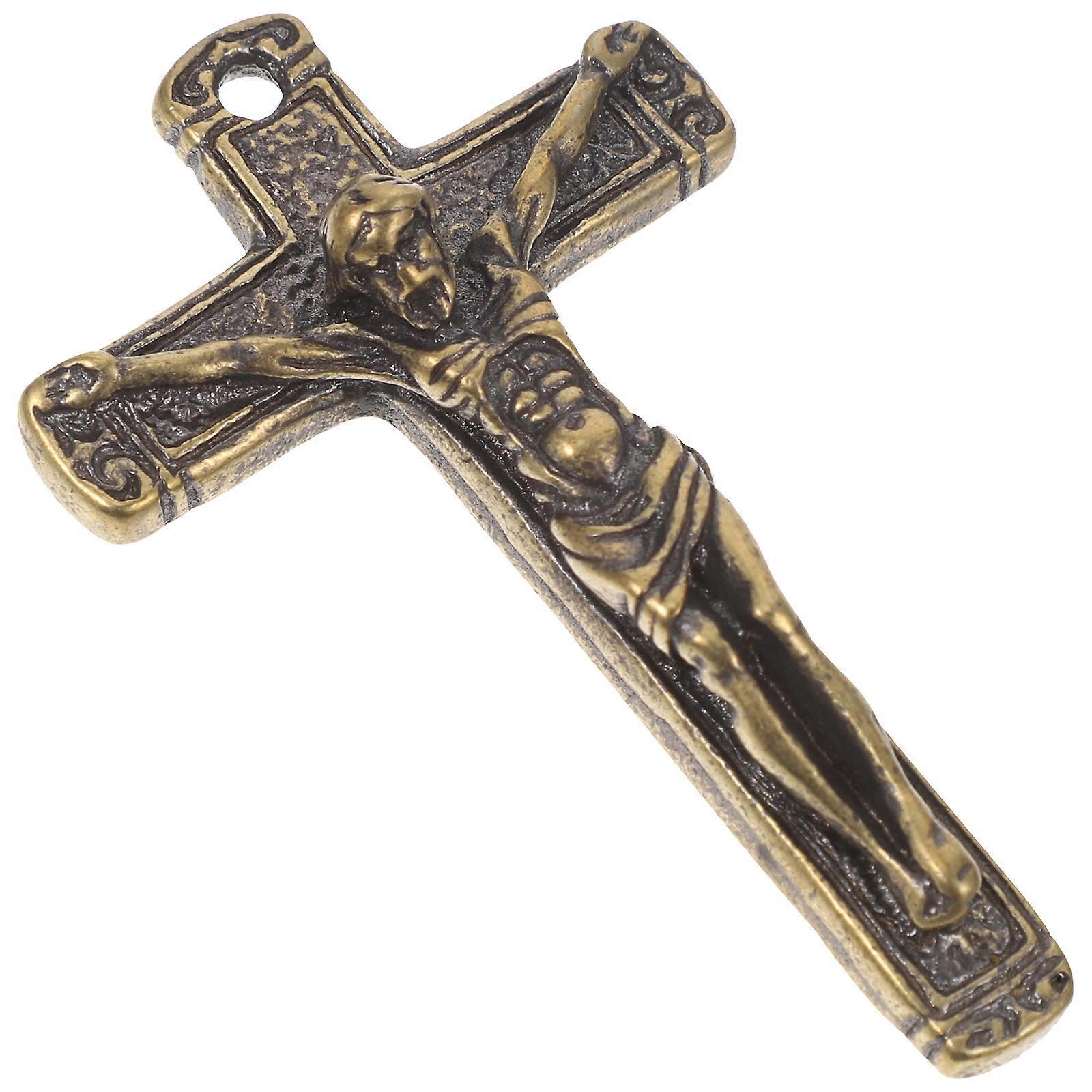 Retro Style Jesus Cross Shape Copper Pendant for Home Golden 2.5x1.5 Inches