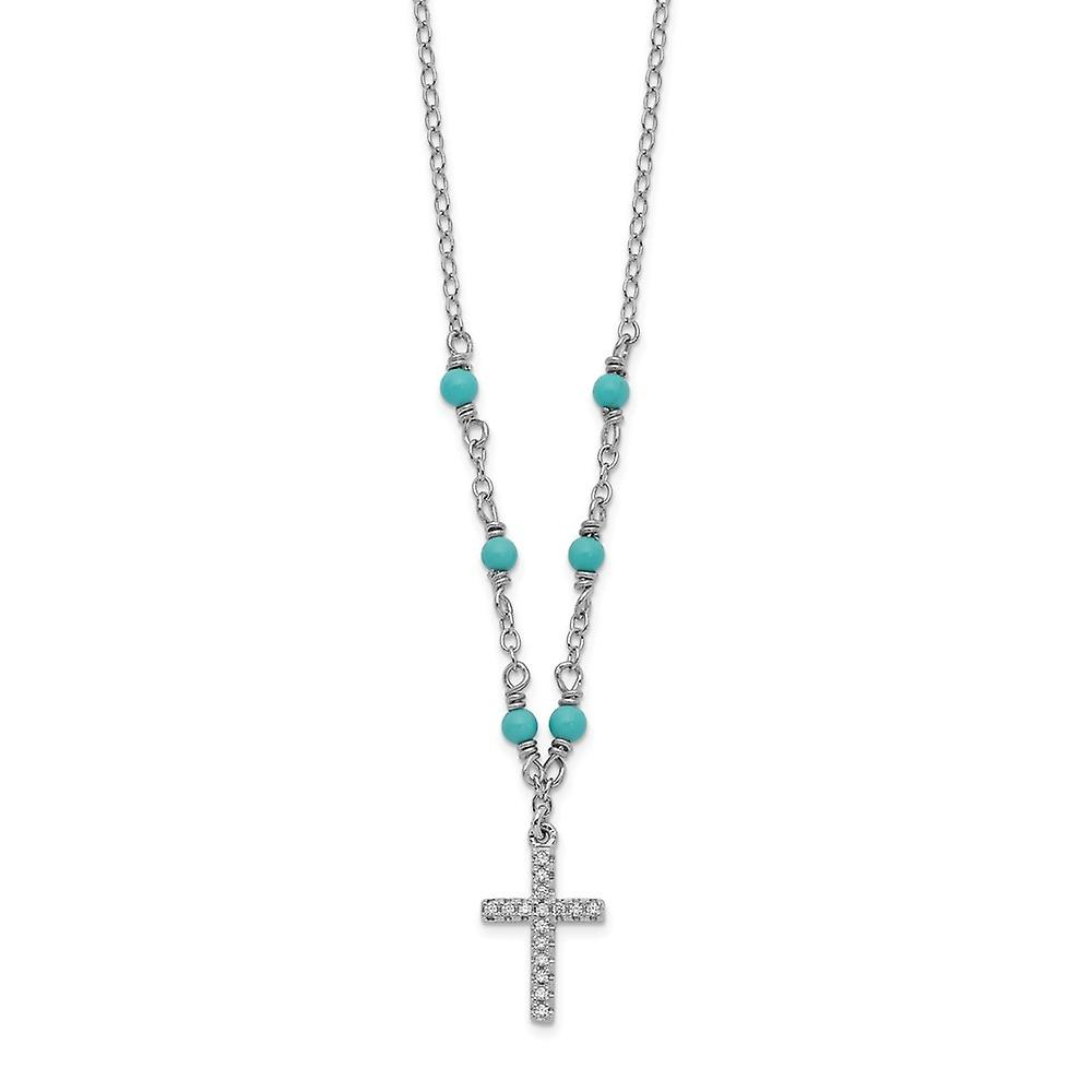 925 Sterling Silver Rhodium Plated CZ Religious Faith Cross Pendant Simulated Turquoise 2inch Ext Necklace 16 Inch Penda