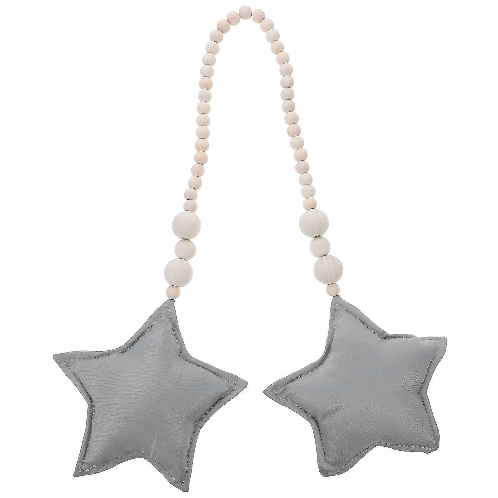 Grey Wooden Beaded Pendant Star Shaped Hanging Decor for Home Office Use 7.5 Inches
