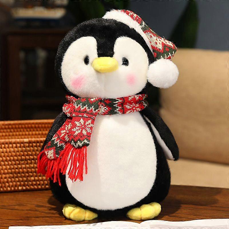Christmas Penguin Plush Toy 25cm Short Plush Doll Stuffed Animal with Scarf Hat Cute Soft Christmas Gift