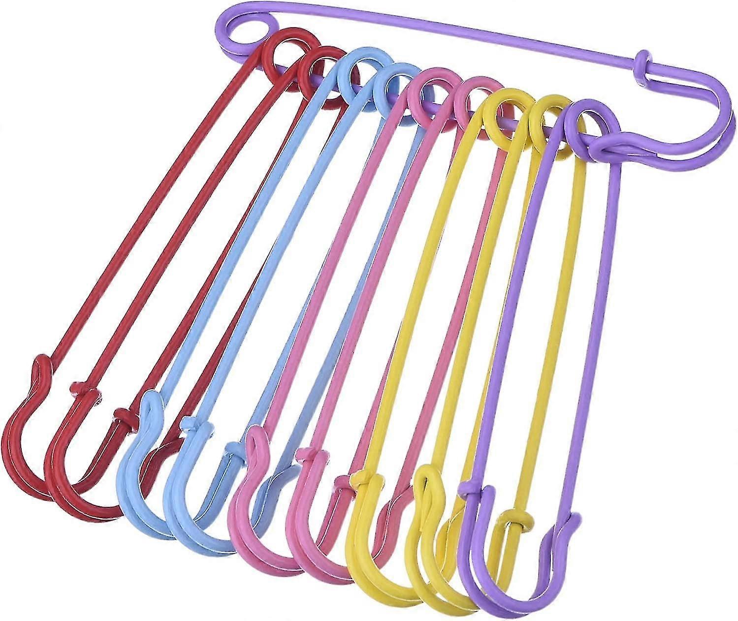 Steel Safety Pins Blanket Pins 4 Inch Extra Large, 5 Colors 10 Pieces