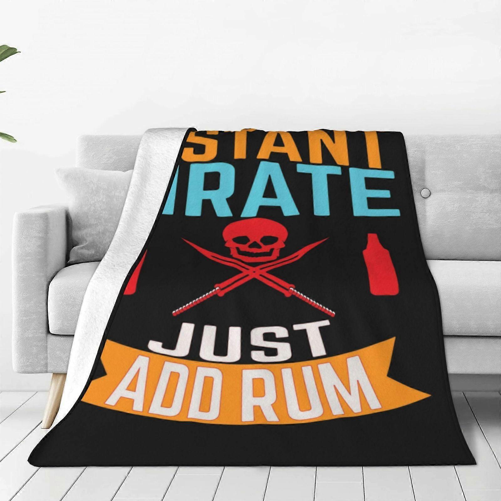 Instant Pirate Just Add Rum - Funny Jolly Roger Halloween Fleece Blanket, Super Soft Cozy Throw Compatible with Couch, Sofa, Bed