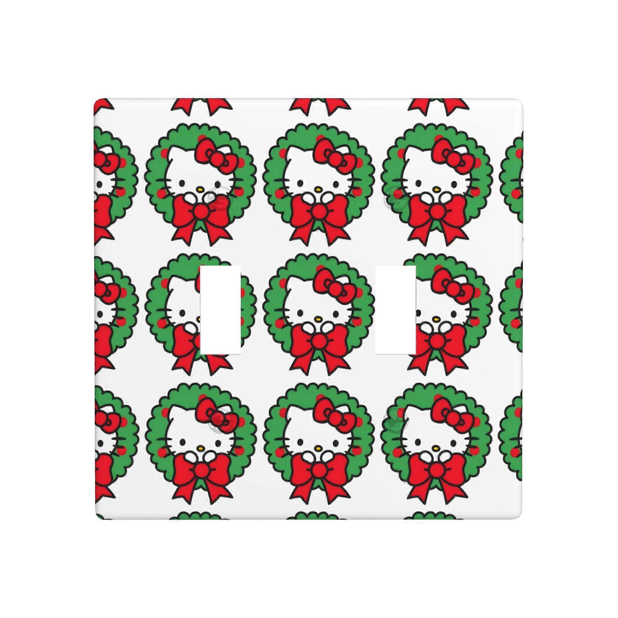 Hello Kitty Christmas print 4.5x4.5 inch double-link toggle switch cover, PC material decorative wall plate compatible with standard US switches,