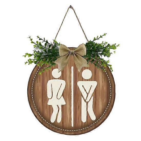 Wooden Gender Tag Toilet Laundry Room Sign with Bowknot Rustic Hanging Sign
