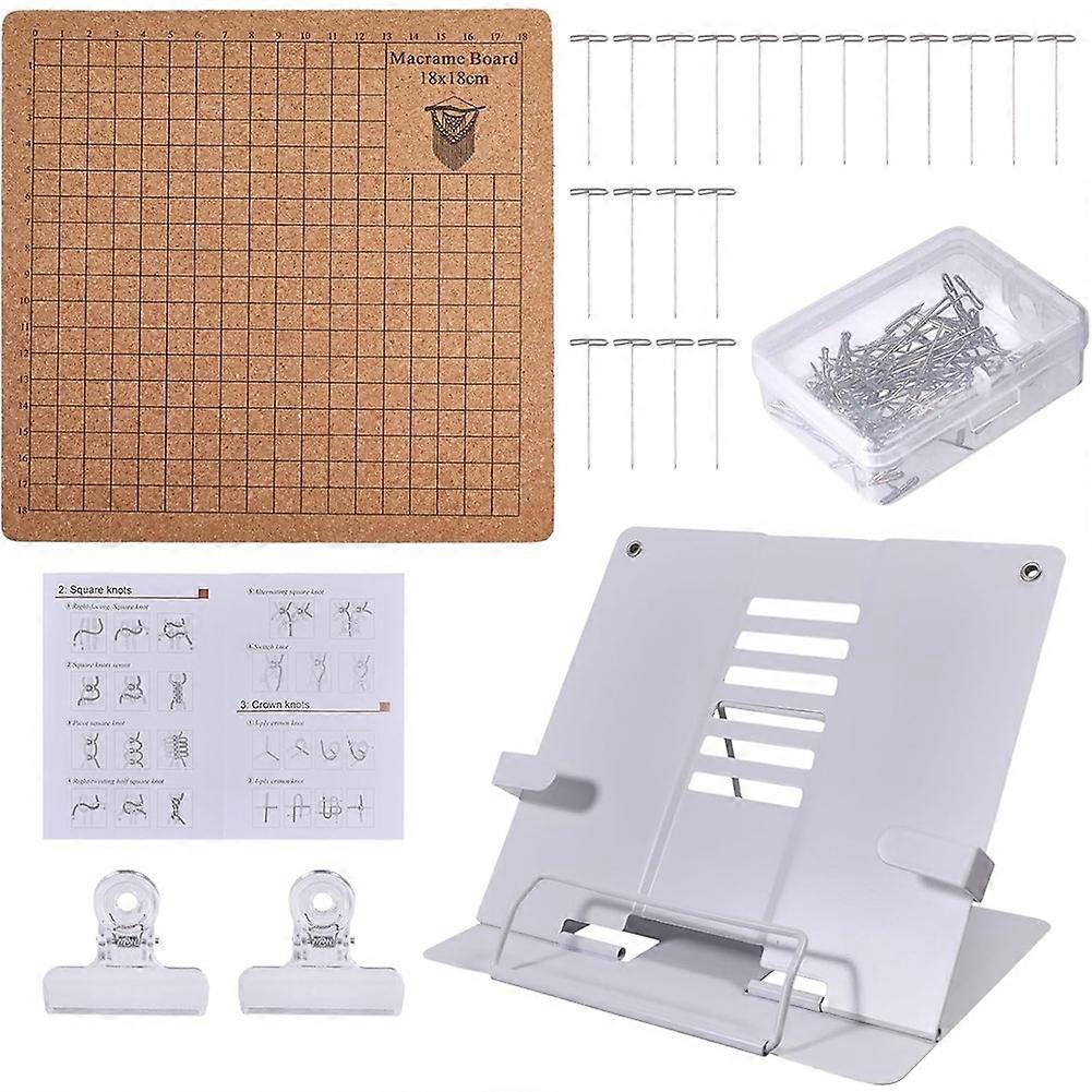 Package contains a 8x8Inch macrame board, 50pcs T-shaped steel pins, a metal stand and 2 transparent clips. Our set comes with two transparent clips that you can use to hold the board for macrame process, practical and considerate. Comes with a metal stand, you can put the macrame board in any bit you want for macrame weaving, which helps you to adjust your posture for long time weaving Made from quality cork material, our macrame board is very durable, the size is suitable for most macrame weaving, and also comes with an instruction on how to weaving, perfect for beginners Our kits are very complete and make ideal gifts for your friends who love macrame weaving, and are also essential tools for macrame beginners Color:As Shown Material:Metal + Plastic + Wooden Board Package Contents: 1set * friendship bracelet board Only the above package content, other products are not included. Note: Light reflection and different displays may cause the color of the item in the picture a little different from the real thing. The measurement allowed error is +/- 1-3cm.