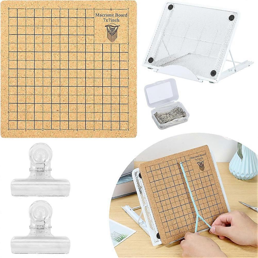 Macrame Board with Metal Adjustable Adjustable Holder with T Pins Clips Supplies Double Sided Grids Project for Braiding