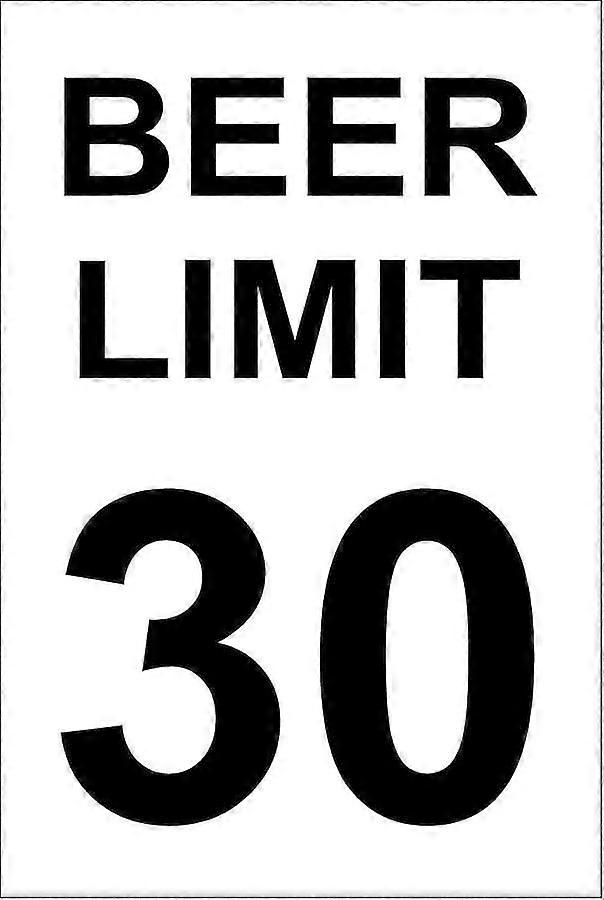 Beer Limit 30 Size: 8 x 12 Inch Metal Novelty Sign