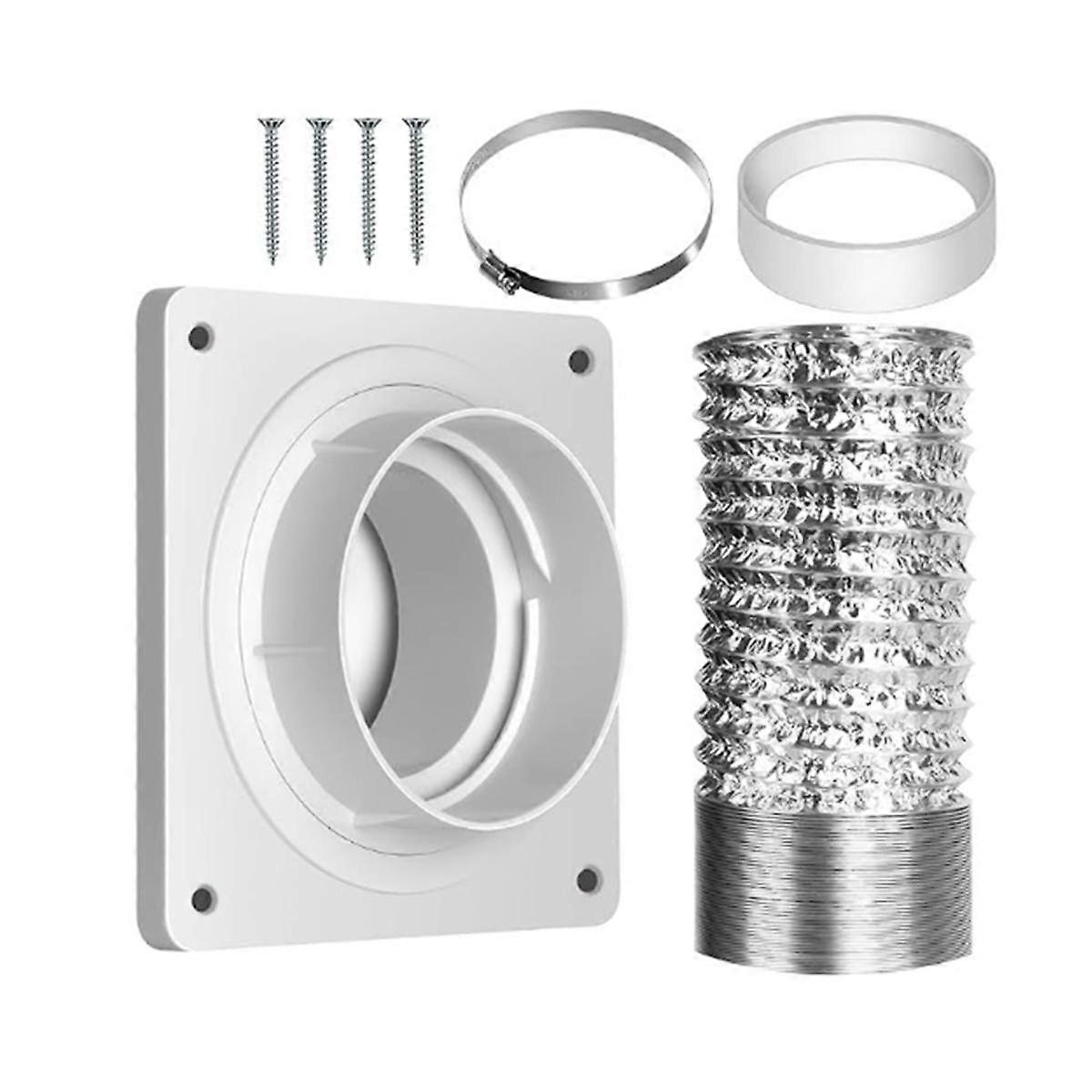 Quick Connect & Disconnect: With its innovative twist-lock mechanism. Excellent for quick connect/disconnect of dryer vent hose. Easy to Install: simply screw the dryer vent hose connector onto the wall and the hose into the adapter, just twist and unlock and twist to lock back, made hooking up the vent easy. Fits 4 Inch Tubes. Flexible Dryer Vent Hose: Dryer duct hose is a flexible vent hose made of high quality flame retardant aluminum that measures 4inch (diameter) x 8 feet (length) when fully unfolded. you can install any 4inch vent pipe or 4inch flexible dryer hose. Perfect Connector:Fits 4 Inch Tubes. Works well for covering up a hole in the wall for the dryer vent. Makes the closet wall look clean and make your laundry room look professional finished. Abundant Applications: Suitable for residential air duct solutions; Widely used in bathroom venting, dryer ventilation, planting room, laundry room, laundry closet, table saw dust, wall exhaust vent, ceiling or warmhouse air circulation, etc. B Includes: 1 wall flange plate 1 hose connector 1 sealing ring 4 screws 1 clamp 1 2.5m hose Colour:White Material:plastic Package Contents: 1 set x Dryer Vent Wall Plate Only the above package content, other products are not included. Note: Light reflection and different displays may cause the color of the item in the picture a little different from the real thing. The measurement allowed error is +/- 1-3cm.