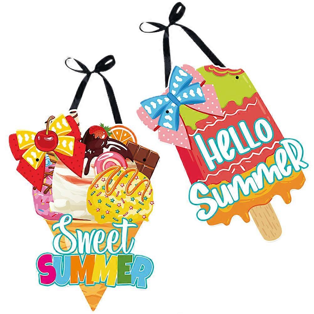 This is a door sign, featuring summer themed style. This is a decorative pendant, made of paper material in a simple style. Rural style and summer style design, it's meaningful and beautiful, creating an art atmosphere, and the door sign has a wide application. Features -Color:Assorted Color -Material:Paper -Size:32.00X24.50X0.10cm/12.58X9.63X0.04in(Popsicle) -Size:32.00X21.60X0.10cm/12.58X8.49X0.04in(Ice Cream) - Hang this summer sign on your front door to welcome guests, make your guest feel happy and warm. - Complementing most room decoration, beautiful wall art creates a sense of harmony and comfort in your room. - Suitable to be hung indoors and outdoors, like home, kitchen, yard, shop, bar, porch, farmhouse or wherever you want. - This summer hanging sign is a good choice for decorating summer or beach theme parties, and has a wide application. - This hanging summer sign can be hung anywhere you like or used as a photo backdrop. Package list: 10 x hanging sign