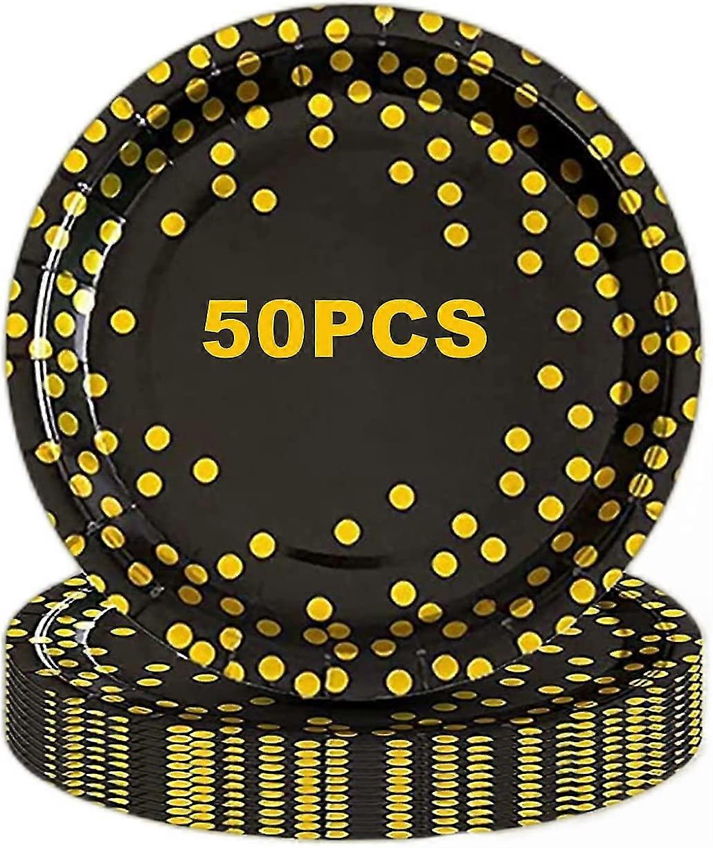 Black And Gold Party Plates, 50 Pack 7 Inch Party Tableware Dinnerware Gift