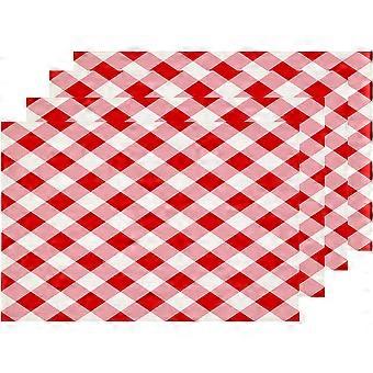 Plaid Retro Placemats, Square Red and White Gingham Pattern Washable Non-Slip Burlap Fabric Rectangle Placemats for Dining Table Kitchen Round Table O