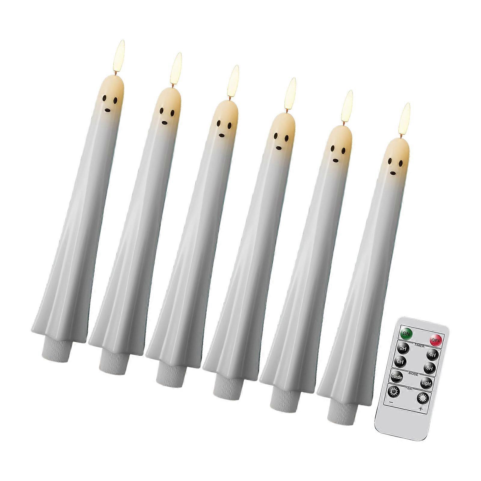 Plastic Halloween Ghostly LED Taper Candle Reusable Decoration With Battery Operations Flickering Candlestick for Table 6PC