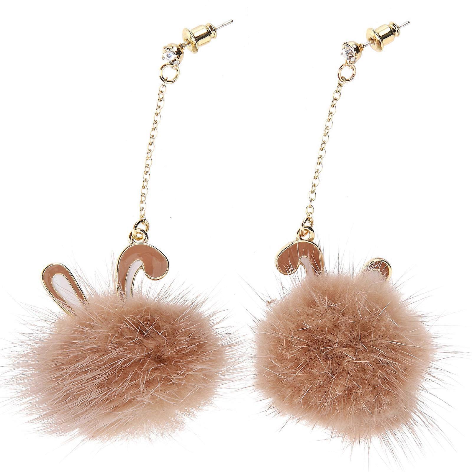 Plush Ball Dangle Earrings for Women – Lightweight Rabbit Ear Pom Pom Drop Earrings for Birthdays, Anniversaries, and Special Occasions