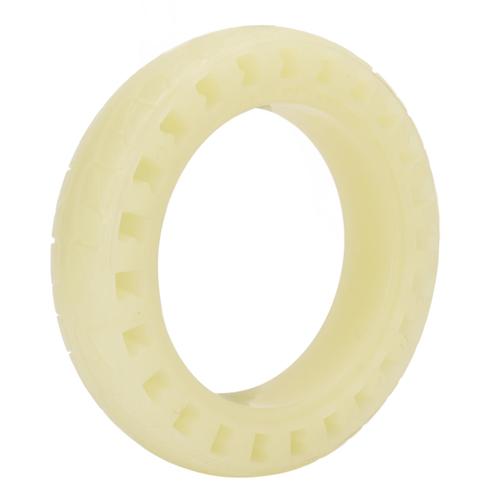 Rubber material: Electric scooter tire features honeycomb shock absorption design inside and honeycomb point design outside. The wear-resistant rubber material is odorless. Stable performance: Grooved surface provides good grip and slip resistance. Explosion-resistant and pressure-resistant design suitable for snow and rain conditions. Fits both front and rear wheels. Fluorescent effect: Achieves visible effect at night while serving as warning for oncoming vehicles with shiny fluorescent green color. Easy to use: No inflation needed, eliminating requirement for patches, inner tubes or bike pumps. Puncture-proof design requires no repairs or maintenance. Elasticity: Flexible rubber material cushions impact, maintains shape under pressure changes and provides comfortable ride.