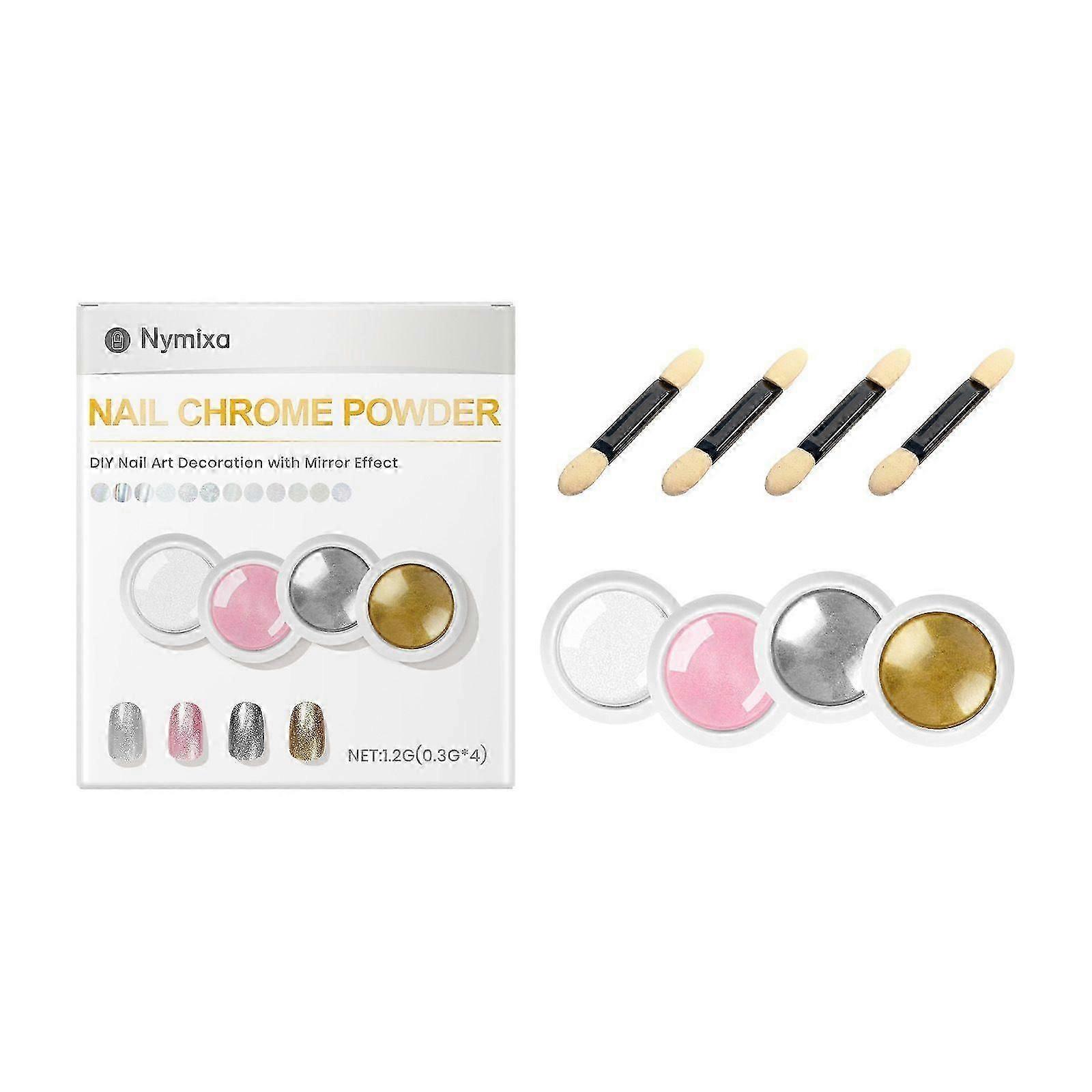 Chrome Nail Powder, 4 Colors White Pearl Nail Chrome Powders, Metallic Mirror Effect Pigment Nails Powder, Aurora Pearlescent Powders Glitter for DIY