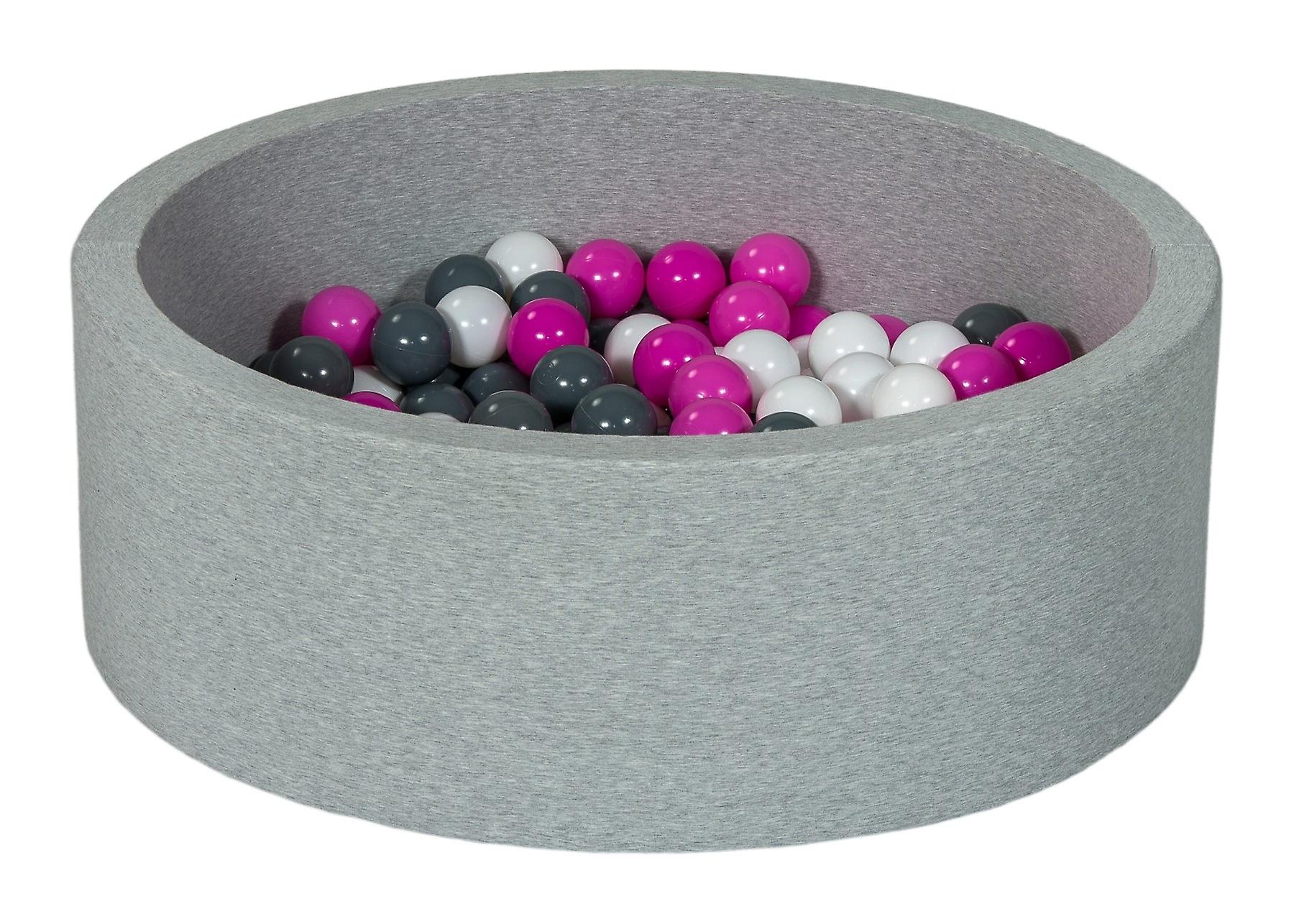 Ballenbak 90 cm met 150 ballen wit, paars & grijs