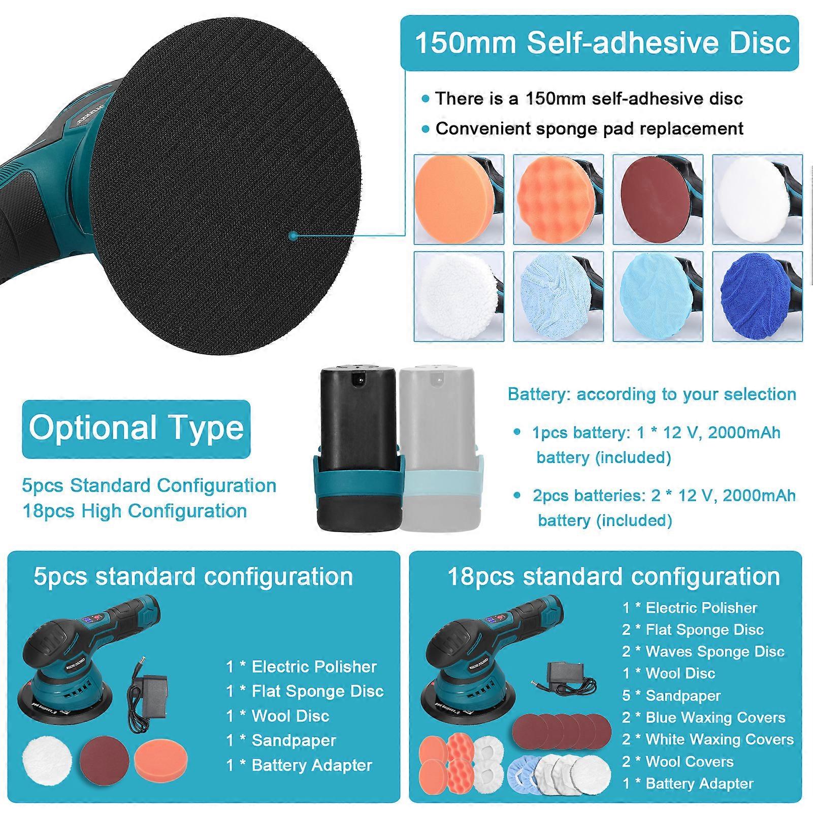 6In Cordless Eccentric Car Polisher 150mm 8-Speed Adjustable