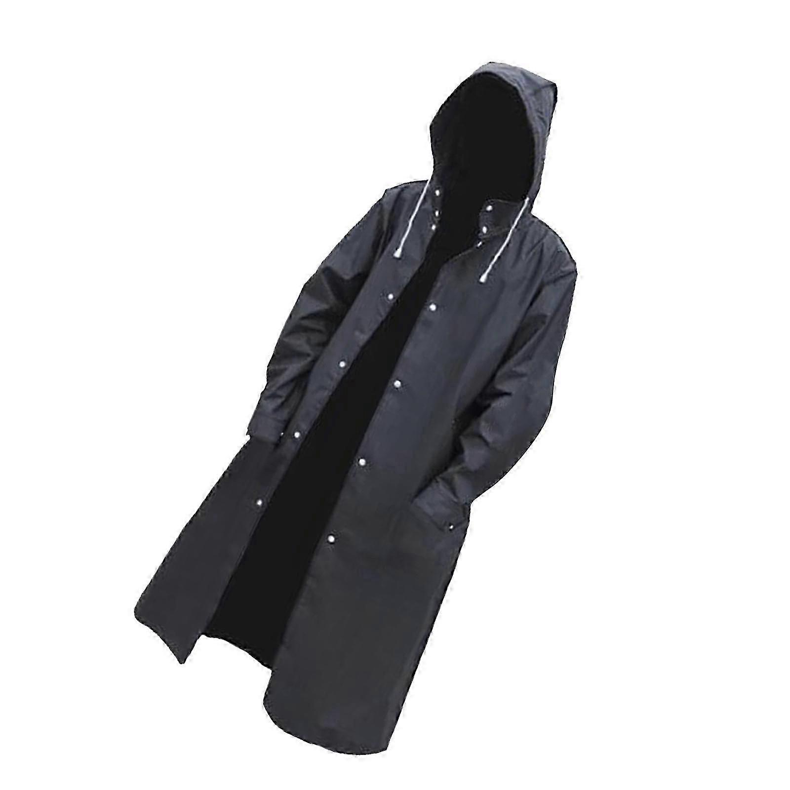 Men Women Long Waterproof Reusable Rain Poncho with Hood Hiking Fishing Long Sleeve Rain Jacket with Button Closure