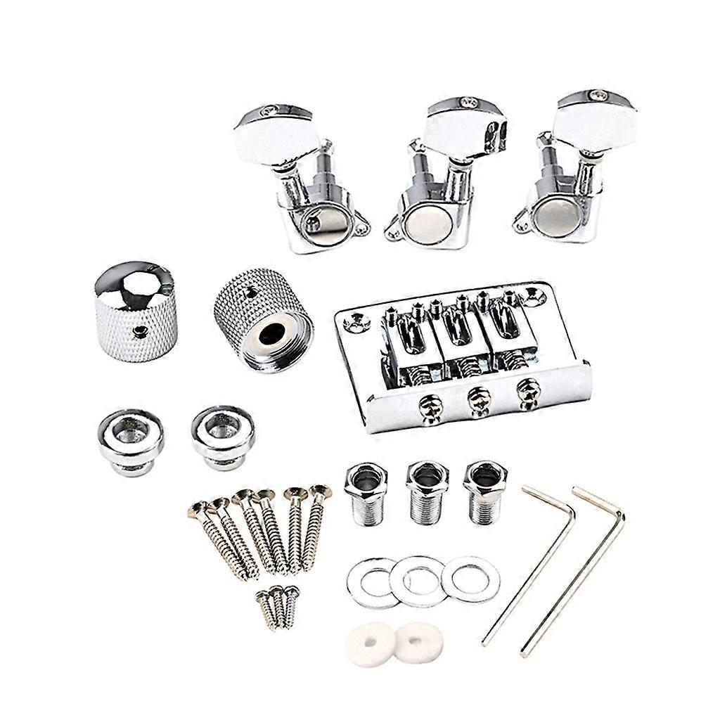 Guitar Saddle Bridge for 3 Strings Guitar Control Knob Wrench Screws Tuning Pegs