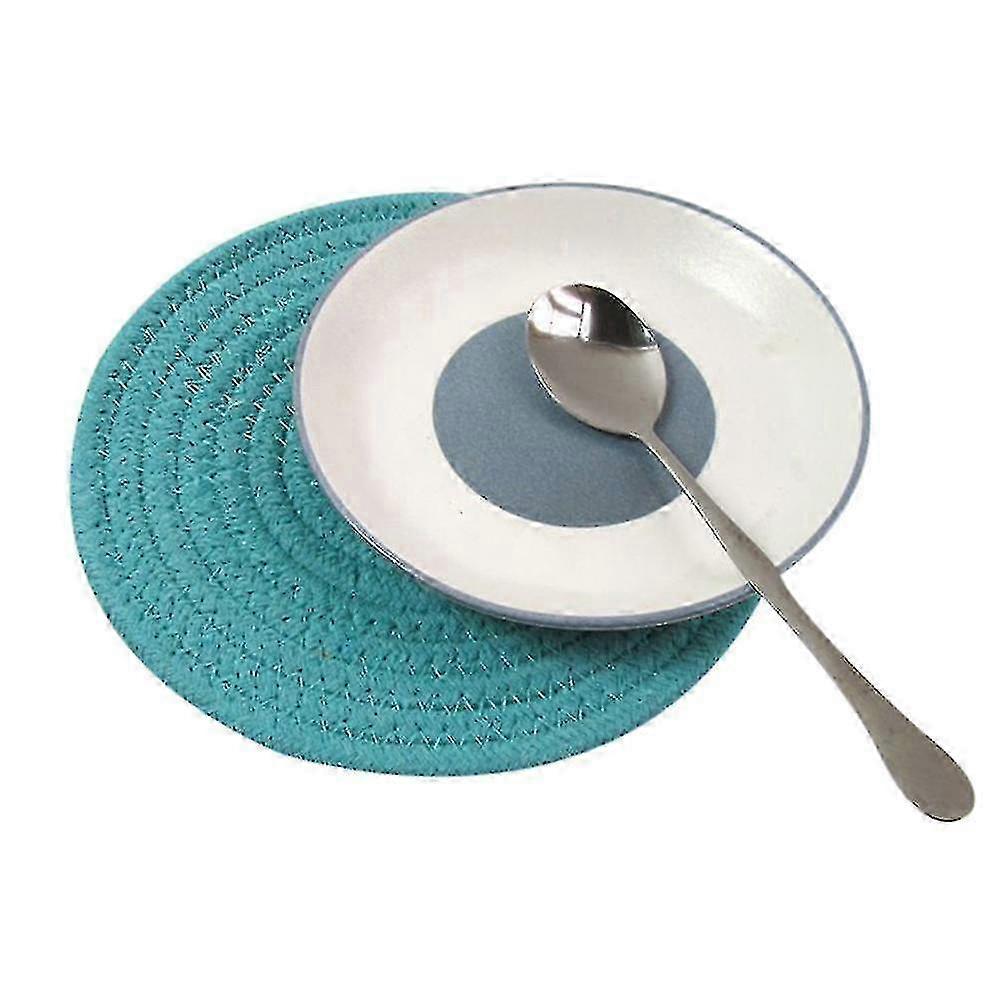 Absorbent Braided Drink Coasters 6pcs 4.3 Inch Round 8mm Thick Blue