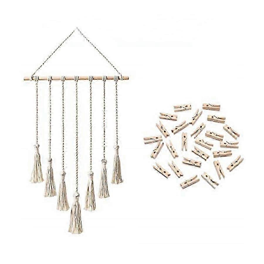 Fringed Photo Holder Wall Decoration with Wood Clips 2025