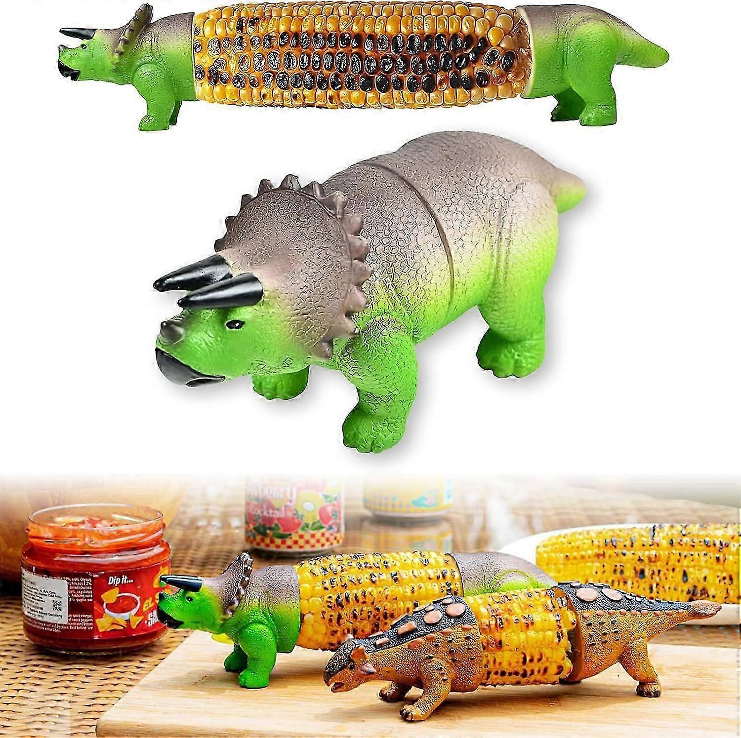 Dino themed corn holders with stainless steel prongs for family dining