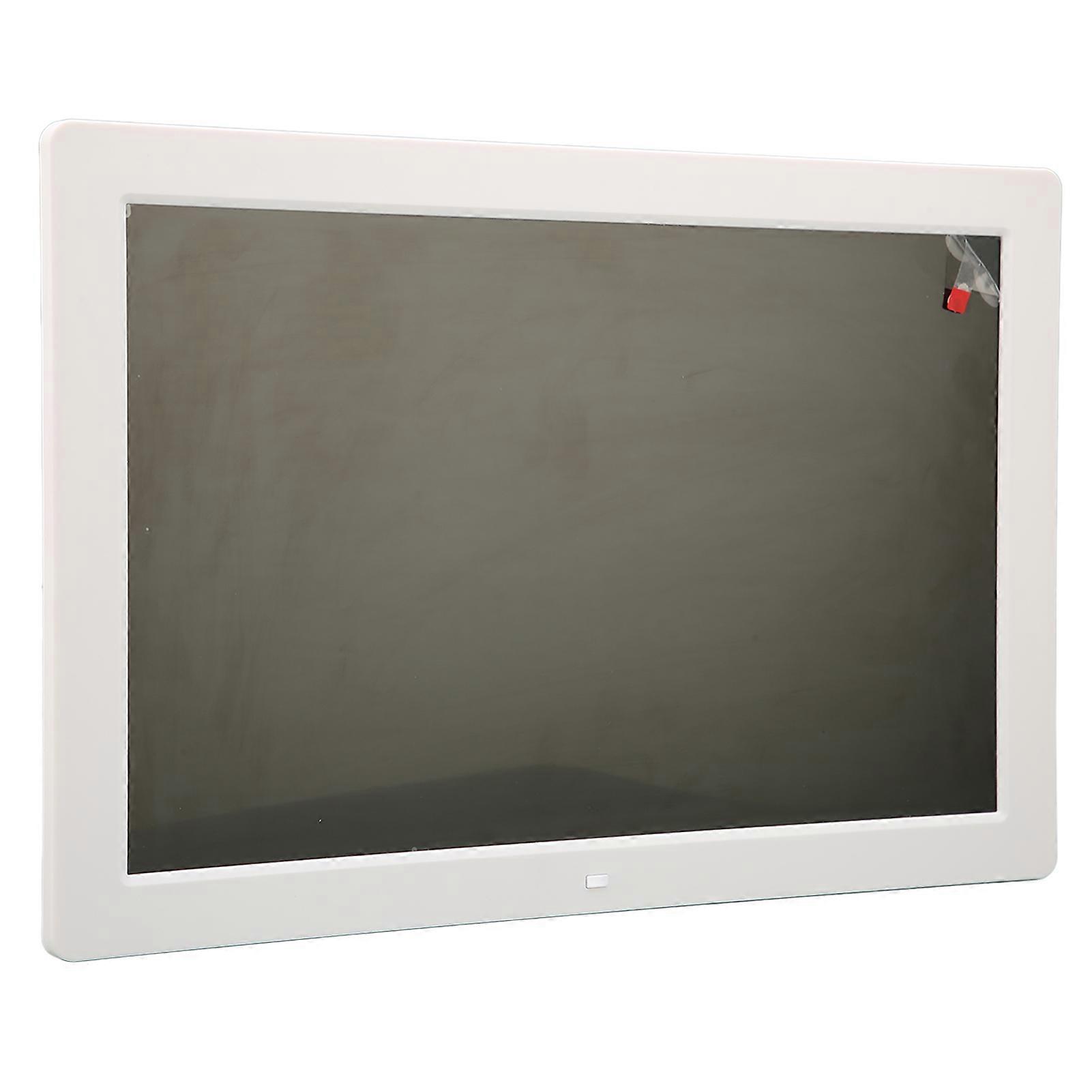 Digital Photo Frame 15.4 Inch 1280x800 Full HD Timing Electronic Picture Frame with Remote Control 100‑240VAU Plug Item Type: Digital Photo Frame Material: ABS Color: White Function: Play Pictures, Videos Scope of Application: Home, Office, etc Screen: 15.4 inches Resolution: 1280 x 800 Support Storage: Storage Card (Maximum Support 32G), MMC and Other Memory Cards (Not Included)         Video Support: MPEG1(VCD, SVCD), MPEG2 (DVD), MPEG4 (DIVX, AVI), RMVB, 1080P HD Advertising Source Sound Support: MP3, WMA Format Picture Support: JPEG Format Support: Stereo Sound Output              Support: Background Sound Pictures, Running Water Subtitles Language Format: Chinese and English and Other 8 Languages Clock, Calendar, Alarm Clock, Time Switch Machine Control Mode: Manual, Remote Control or Automatic Playback After Power on Remote Control Built in Battery: Button Battery CR2025 Built in Battery Capacity: 160mAh