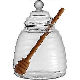 500Ml / 6.9 Oz Honey Pot with Dipper, Glass Honey Jar and Dipper Set, Honey Dispenser, Beehive Honey Pot for Store Honey and Syrup