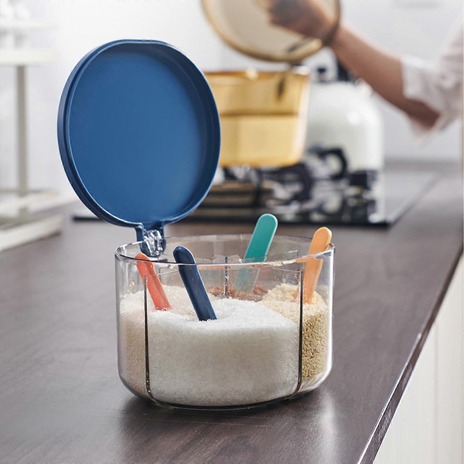 Fnyoxu Sealed Spice Jar with Spoon Combination Four Compartments Monosodium Glutamate Jar,Household Multi-compartment with Lid Storage Seasoning Jar