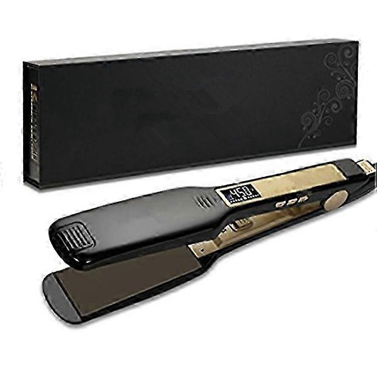 {Powerful Straightening Capabilities} 1.75 inch wide flat iron is suited for lots of different types of hair, especially thick and curly hair, even type 4C, with it you can style a bunch of more hair once. The larger titanium plates heat up fast and distribute heat evenly, save more time when styling. {Adjustable Temperature Settings} Ranging from 170F to 450F, this flat iron allows you to adapt the heat to what your hair needs the most. Freely change to Celsius with just a tap and the straightener has a Digital LCD display that makes it easy to see what temperature setting youre currently using. {Salon-level of Styling} If youve got a mane that cant be tamed, titanium is the way to go. The titanium plates are highly conductive and provide fantastic heat that deals with even tight coils & curls. Using this titanium flat iron promises a silky-smooth finish. Your hair will look healthy & will be delightful to run your fingers through. {How Practical} The hair straightener adopted advanced digital technology PTC heater and 3D floating plates design, making it heat up quickly and achieve ZERO sticking or pulling, glide smoothly through hair. An auto shut-off that you can set in case you leave it on after 30 to 180 minutes as a safety precaution. {Dual Voltage} Featuring 100-240V worldwide dual voltage, you can enjoy beautiful straight hair both at home and away. Move freely with the 360 degree swivel cord and the safety lock button is convenient for saving space. Product Description Default Temperature by Press "P" button : 270F(140C)- Fragile/Soft Hair 350F(180C)-Damaged/Colored Hair 410F(210C)-Healthy/Wiry Hair Easily change the temperature: Hold the"+"and "-"buttons together, the temperature display will switch between Fahrenheit and Celsius. Why could you choose our 1.75 inch wide hair straightener: Save Time: 1.75 inch; 30s fast heat up; 3 preset button; Get Smooth Hair: Nano-Titanium 3D floating plates for even heat distribution & zero pulling; Temperature Setting: 170-450(80-230), suitable for all hair types; Travel Companion: Universal dual voltage; Safety lock for easy storage; Keep You and Your Family Safe: 60min Auto Shut-Off; Convenience: 8ft 360 swivel cord for convenient styling; Read more Note: Due to the light and screen setting difference, the item's color may be slightly different from the pictures. Please allow slight dimension difference due to different manual measurement.