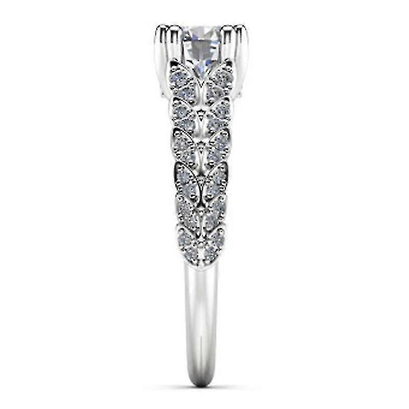 Silver Plated Willow Double Row Diamond-set Zircon Ring - Simple Silver Willow Double Row Diamond-set Zircon Ring