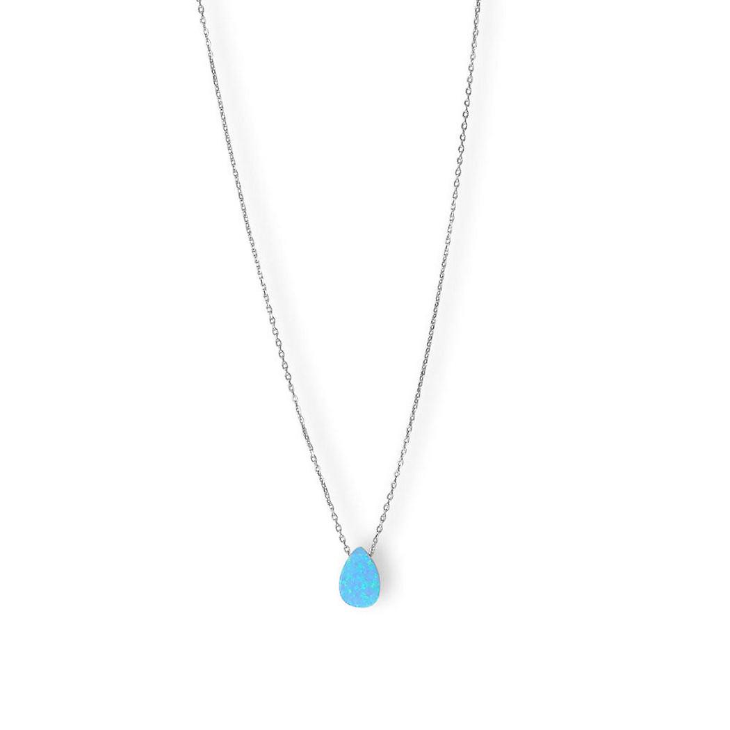 925 Sterling Silver 16 Inch + 2 Inch Rhodium Plated Simulated Opal Pear Necklace 16+2 Inch Lobster Clasp Closure Pendant