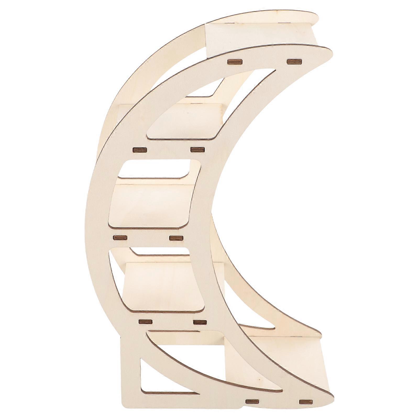 Beige Moon Shelf Wood Decor Ornament Centerpiece for Home Table Decoration 11.5x5.5x1.2 Inches
