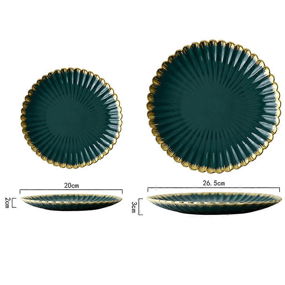 Dark Green Retro Ceramic Plate Gold Chrysanthemum Dish Serving 8Inch