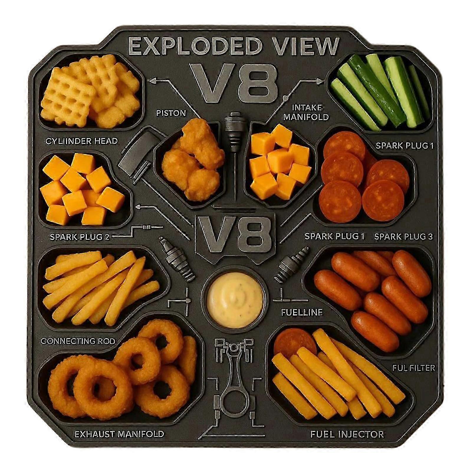 V8 Engine Food Platter, Creative Cheese Board Snacks Fruits BBQ Food Serving Tray for Car Lovers Gift