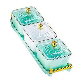 Divided Serving Platter with Cover and Handle Appetizer Plate for Candy Nuts 3 Compartment