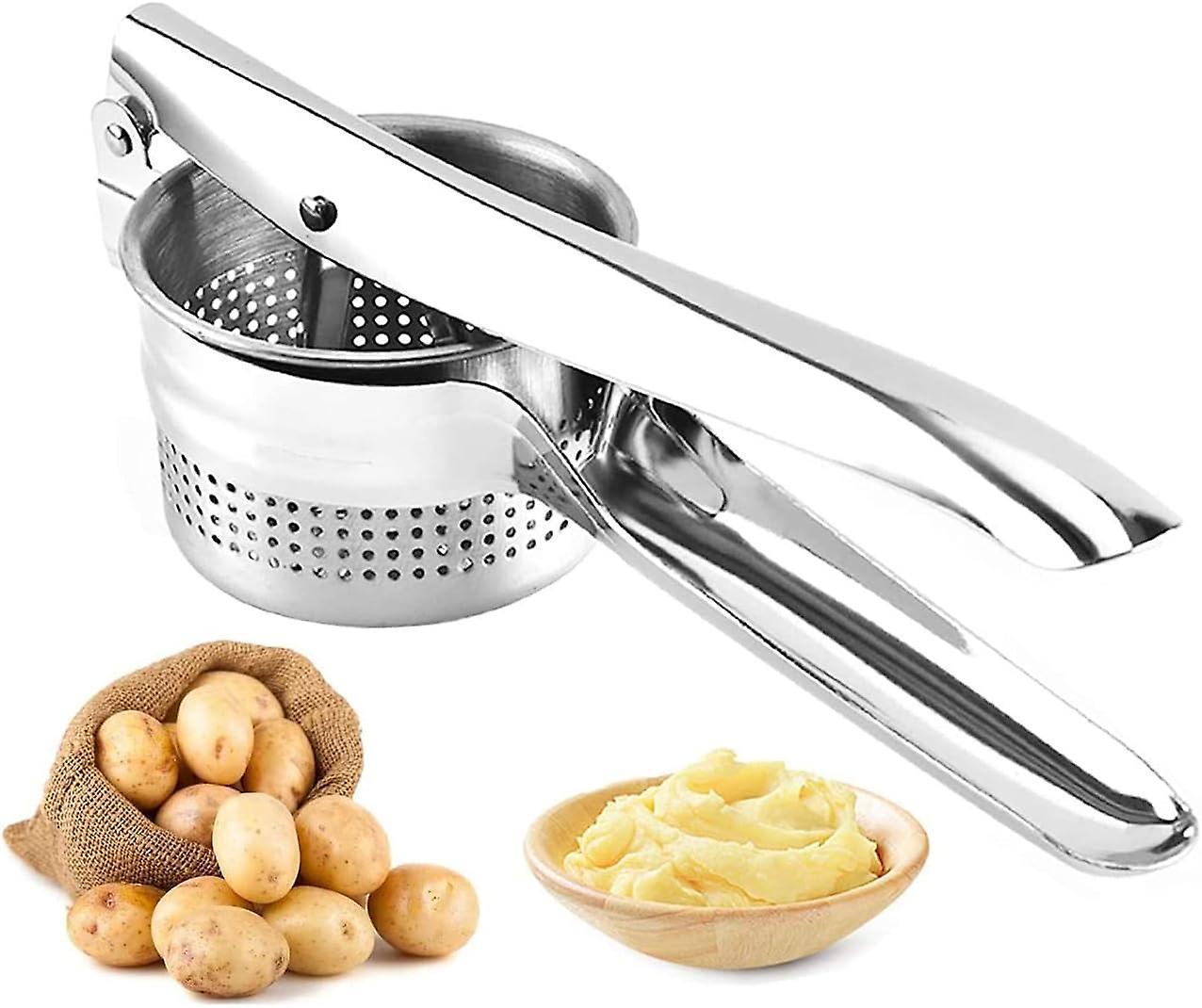 Stainless steel potato press with perforated disc, a must-have in the kitchen, easy to make mashed potatoes, convenient and fast